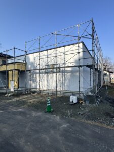 外壁の防水層が仕上がり、雨や紫外線から建物をしっかり守るための大切な工程が一区切…