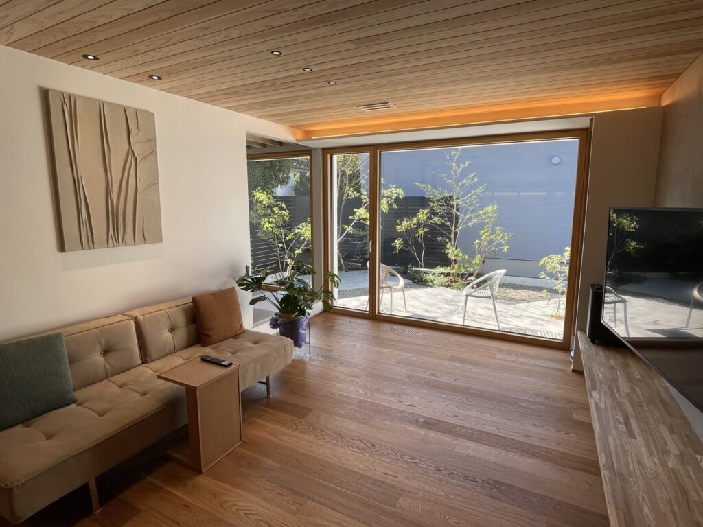 ⬛︎ 木製サッシ(スマーウィン)の大間口(トリプルガラス)の開放感