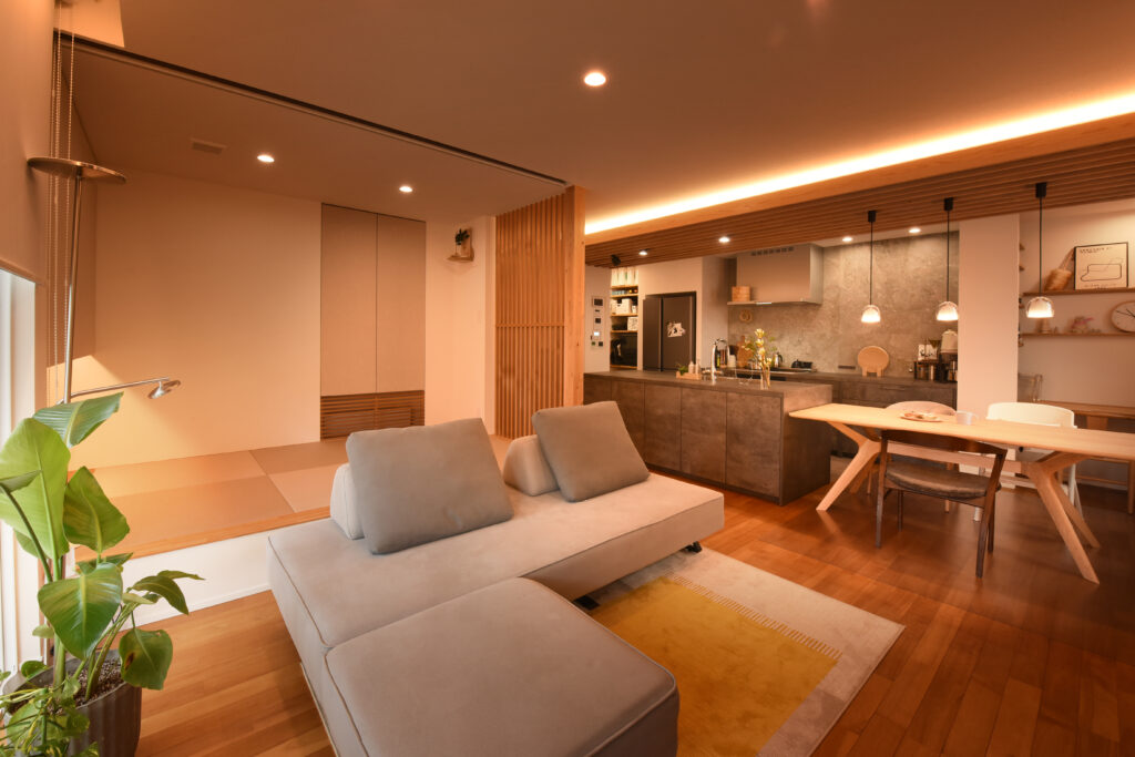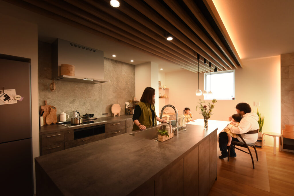 Tさん(住まいの提案、熊本。Vol.40取材掲載) Q 立山建設を選んだ理由は? 古い一軒家に住んでいましたが、冬の寒さが厳しく、特に冷え性の妻には堪える環境でした。住宅展示場を回りましたが、性能と設計の両立に納得できずにいました。そんなとき、家づくりに詳しい同僚から聞いて知った「パッシブハウス」という考え方。調べて行き着いた立山建設さんの完成見学会。体感した暖かさと高い断熱・気密性能に驚きました。立山社長の真っ直ぐな人柄にも信頼を感じ、お願いしようと決めました。 Q 家づくりで一番こだわったところは? 60坪の敷地を活かしたコンパクトサイズの平屋です。建築家から「平屋がいいですよ」と提案され、模型を見て一気に心が動きました。玄関とリビングの視線をずらす設計や、来客と家族の動線を分けた間取りなど、細部まで工夫されています。タイルや洗面なども夫婦でじっくり選び、悩む時間も楽しみました。 Q 住んでみての感想を教えて下さい。 入居して一年、冬も夏も室内の温度が安定していて快適ですね。高い断熱性能を実感しています。また、書斎は、将来の寝室に変えられるなど、子どもの成長に合わせた使い方ができる可変性も魅力。30坪の平屋ですが、私たちの暮らしにちょうどよく、これからの人生に寄り添ってくれる住まいだと感じています。
