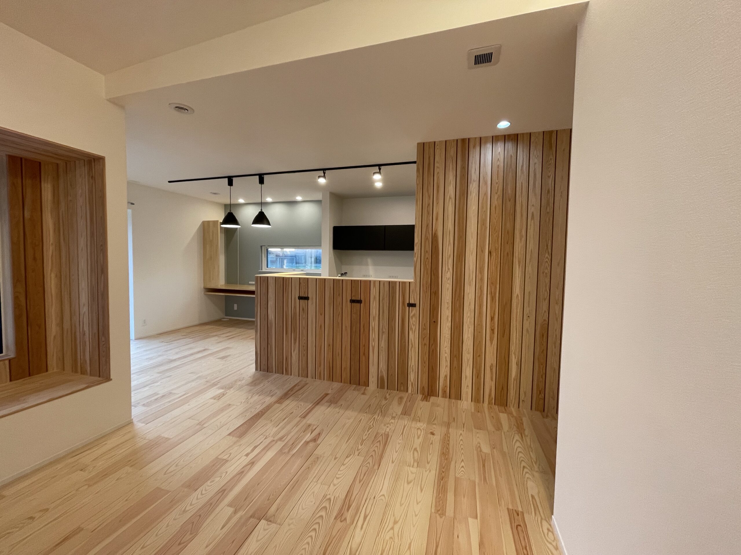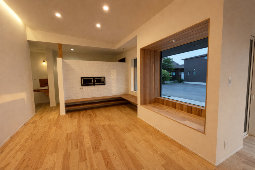 家族団らんを育むNOOKのある家 Spec 間取り:2LDK(将来3LDK対応) 延床面積:31.68坪 家族構成:ご夫婦+お子さん2人 性能:UA値=0.26W/㎡k C値=0.09㎠/㎡ 耐震等級3(許容応力度計算) 認定長期優良住宅 Concept 家族が自然と集まり、くつろげる“NOOK(ヌック)”を中心にした住まい。リビングの一角に設けたこもり感のある空間が、読書や会話、子どもの遊び場として多目的に活躍します。家族それぞれの時間を大切にしながらも、同じ空間でつながりを感じられる暮らしを実現しました。 Check Point ・リビングに設けたこもり感のあるNOOK空間 ・家族が自然と集まる間取り設計 ・読書やくつろぎに使える多目的スペース ・子どもの遊び場やスタディスペースとして活用可能 ・空間にメリハリをつくる設計工夫 ・家族の気配を感じられる距離感のある住まい こんな方におすすめ ・家族が自然と集まる居場所をつくりたい方 ・リビング+αのくつろぎ空間がほしい方 ・子どもと一緒に過ごせる空間づくりをしたい方 無料相談はこちら 一覧へ戻る