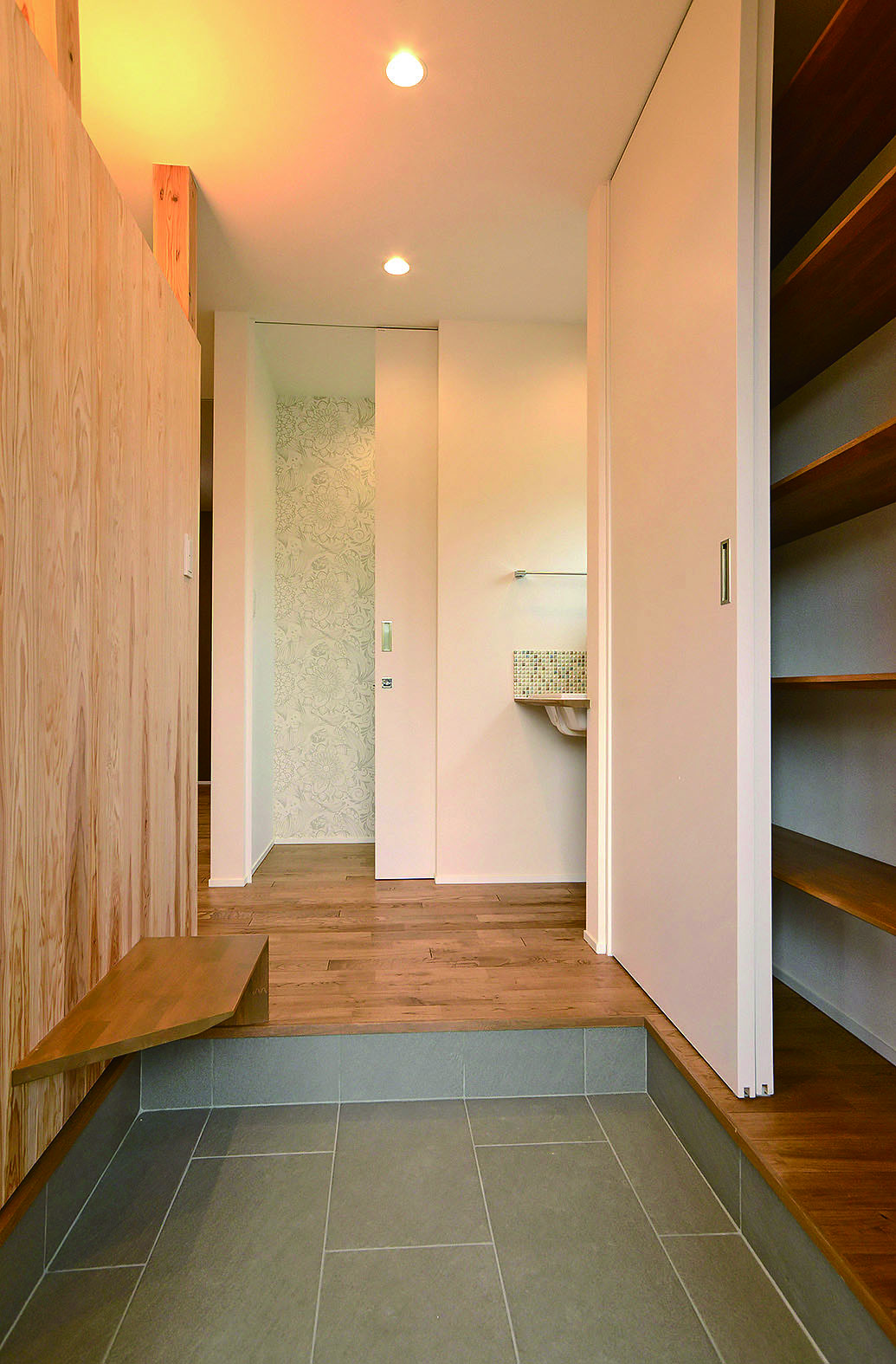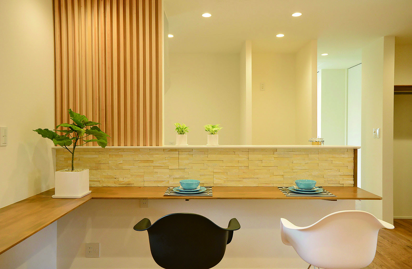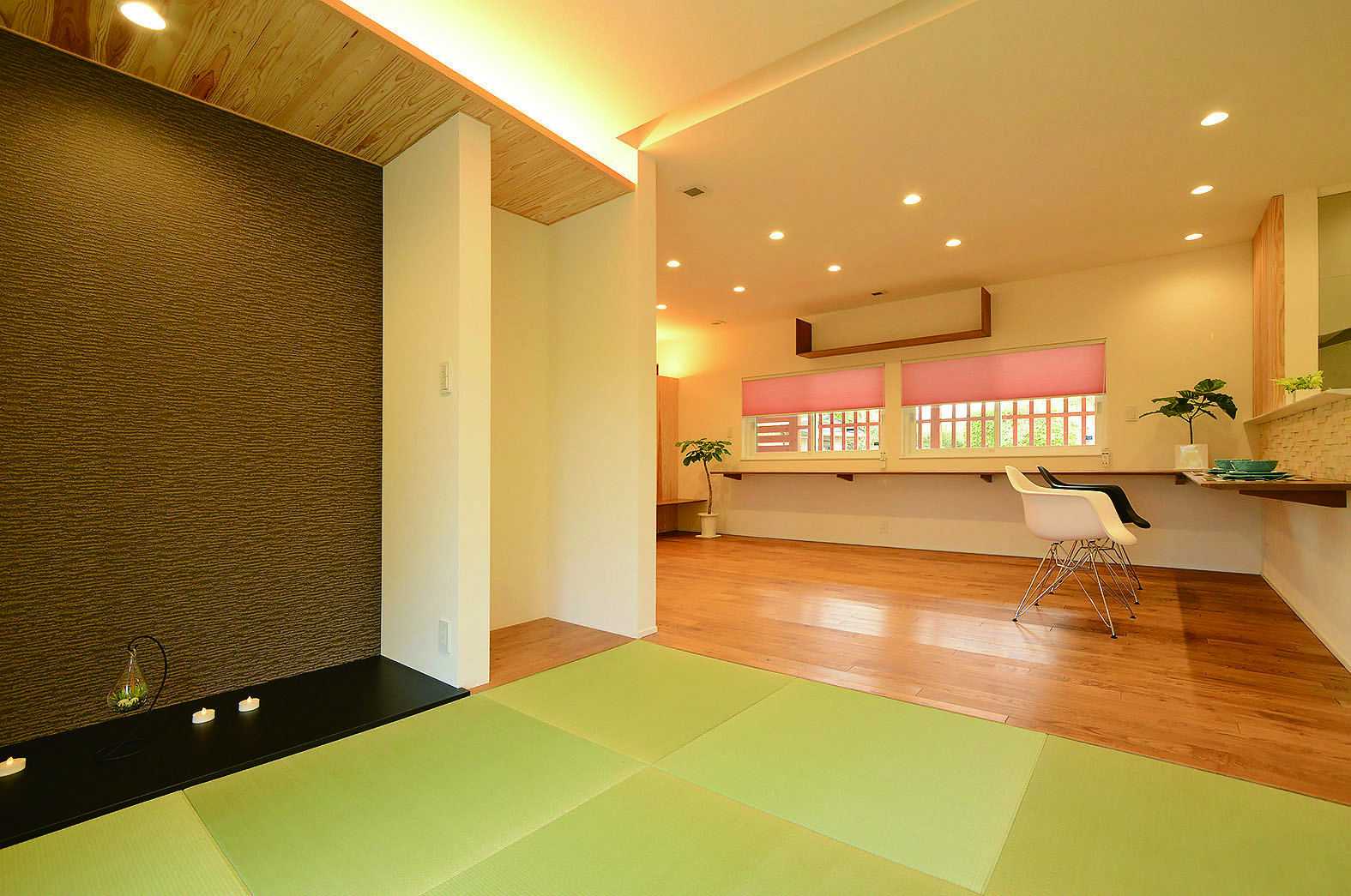やさしい温度に包まれる、のびやかな平屋の家 住まいの中の温度差をできるだけ抑え、一年を通して快適に過ごせることを大切にした平屋の住まいです。高い断熱性能と気密性により、夏の暑さや冬の寒さをやわらかく受け止め、冷暖房に頼りすぎない安定した室内環境を実現しています。LDKは家全体とゆるやかにつながるワンフロア構成とし、視線が抜けることで実際の面積以上の広がりを感じられる空間に。素材の質感や光の入り方にも配慮し、時間帯によって表情が変わる心地よさも魅力です。日々の暮らしを静かに、そして快適に支える住まいとなりました。 Check Point 窓は世界基準の高度な断熱性を誇るトリプルガラスを使用しました。 和室とリビングがフラットにつながり、広がりのある快適空間です。 Performance C値(相当すき間面積) 0.16 cm² /m² Ua値(外皮平均熱貫流率) 0.36W/ m² K 一覧へ戻る