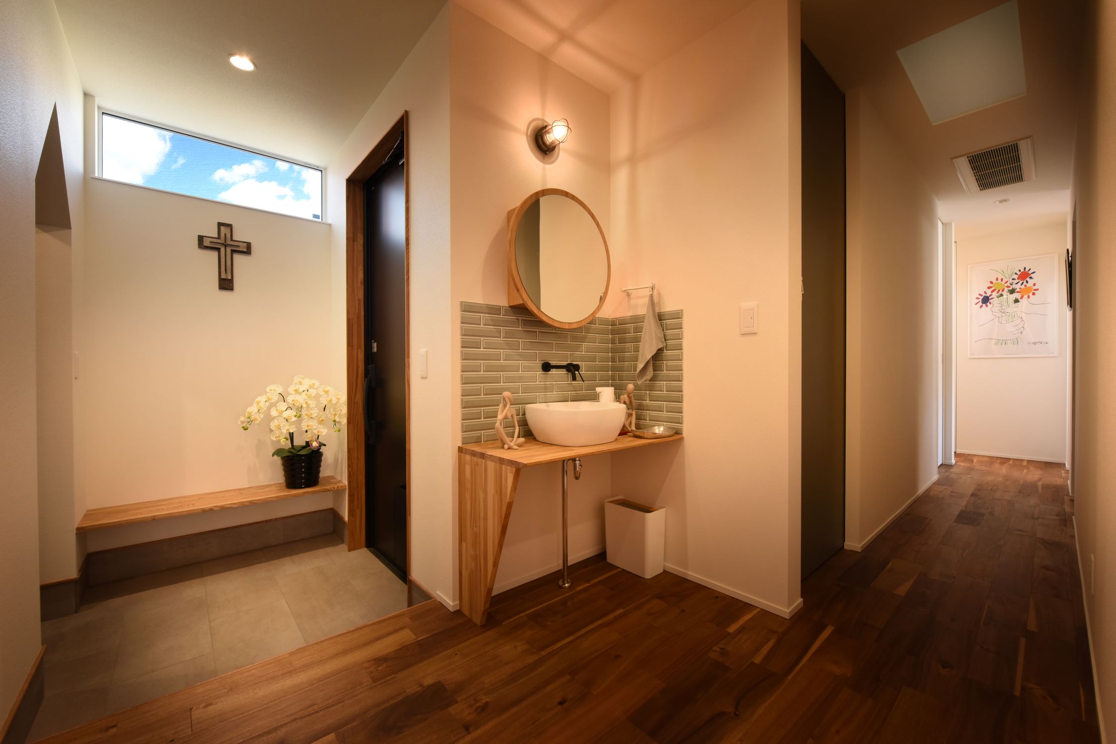 床の木目に壁の白色が映える、落ち着いたエントランスが迎えてくれる。